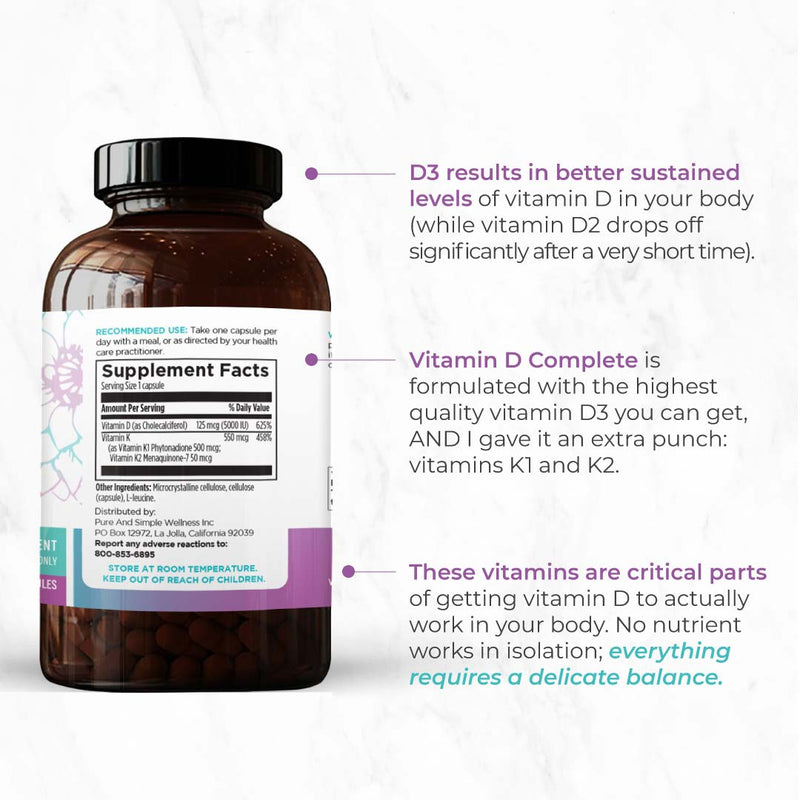 Vitamin D Complete is formulated with the highest quality vitamin D3 you can get, AND I gave it an extra punch: vitamins K1 and K2.
